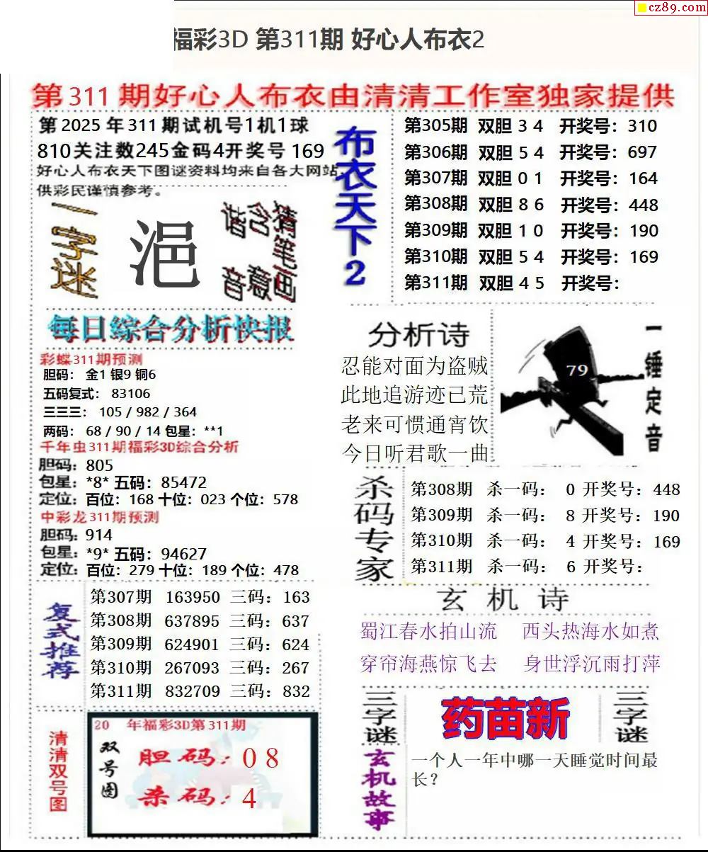 首页 > 福彩3D图谜 > 好心布衣2025311期3d图谜