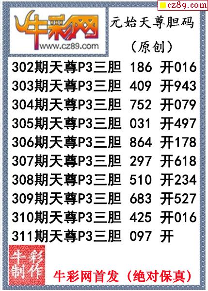 > 元始天尊胆码图311期体彩P3图谜(原创)